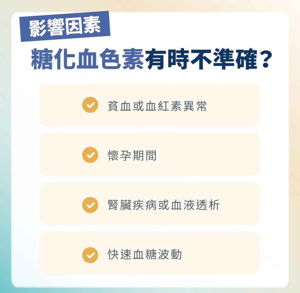 雖然糖化血色素是長期血糖控制的黃金指標,但部分情況會影響其準確度: