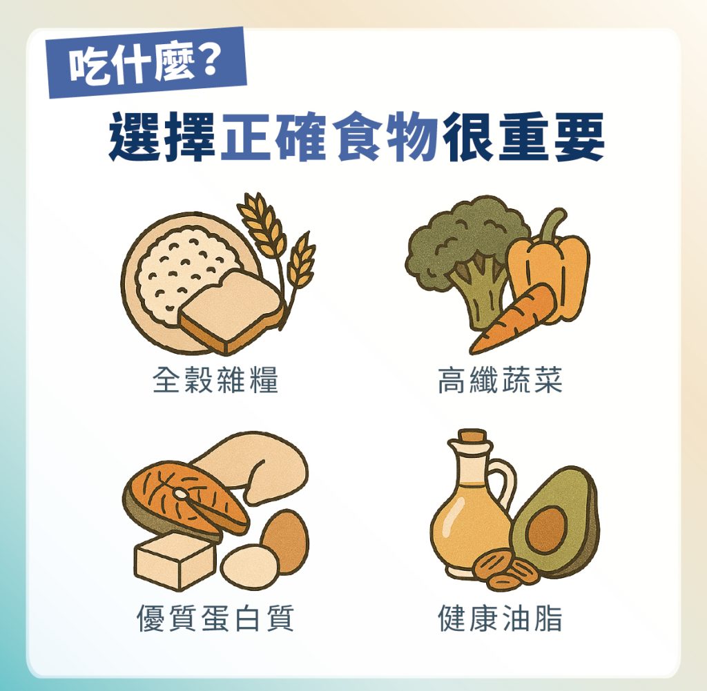 在糖尿病飲食規劃中,選擇正確的食物能幫助穩定血糖,同時確保營養均衡: